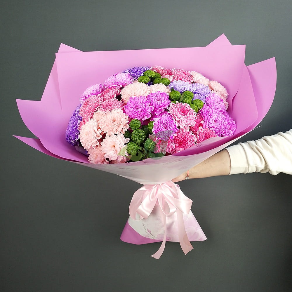 Скажите нам, куда нужно доставить большой букет хризантем, и мы привезем его вовремя.